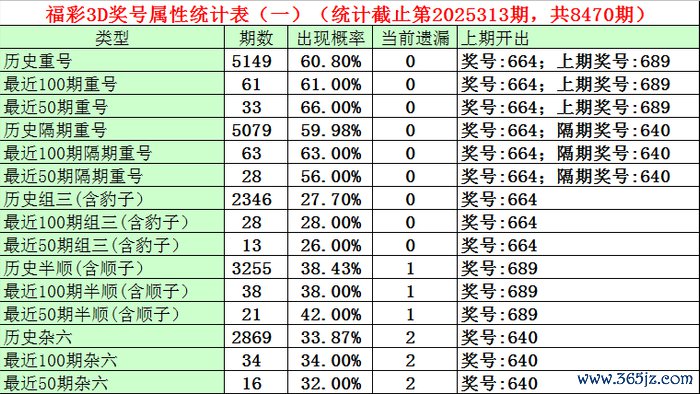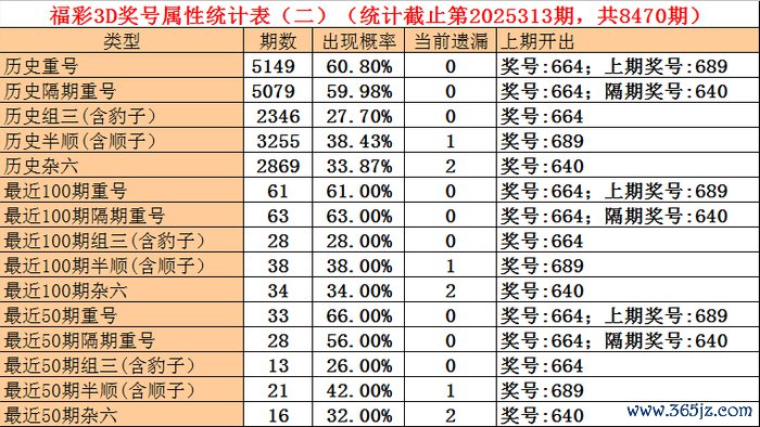 上期奖号:福利彩票3D第2025313期开出奖号664。