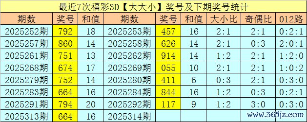 开奖总结:福彩3D第2025313期奖号为664。奖号为:组三,大小比为2:1,大小类型为:大大小。